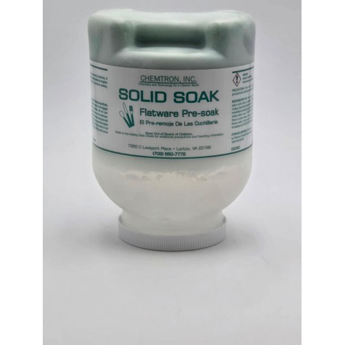 Solid Soak has an effective formula that is designed to loosen, soften, and remove food soils from silverware, stainless steel, flatware, glass, and any other dinnerware.